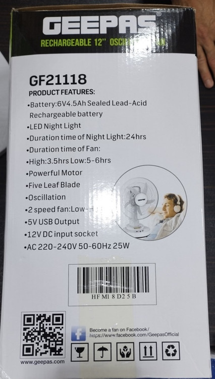 🌬️ معرفی پنکه شارژی ۱۲ اینچی Geepas GF21118: