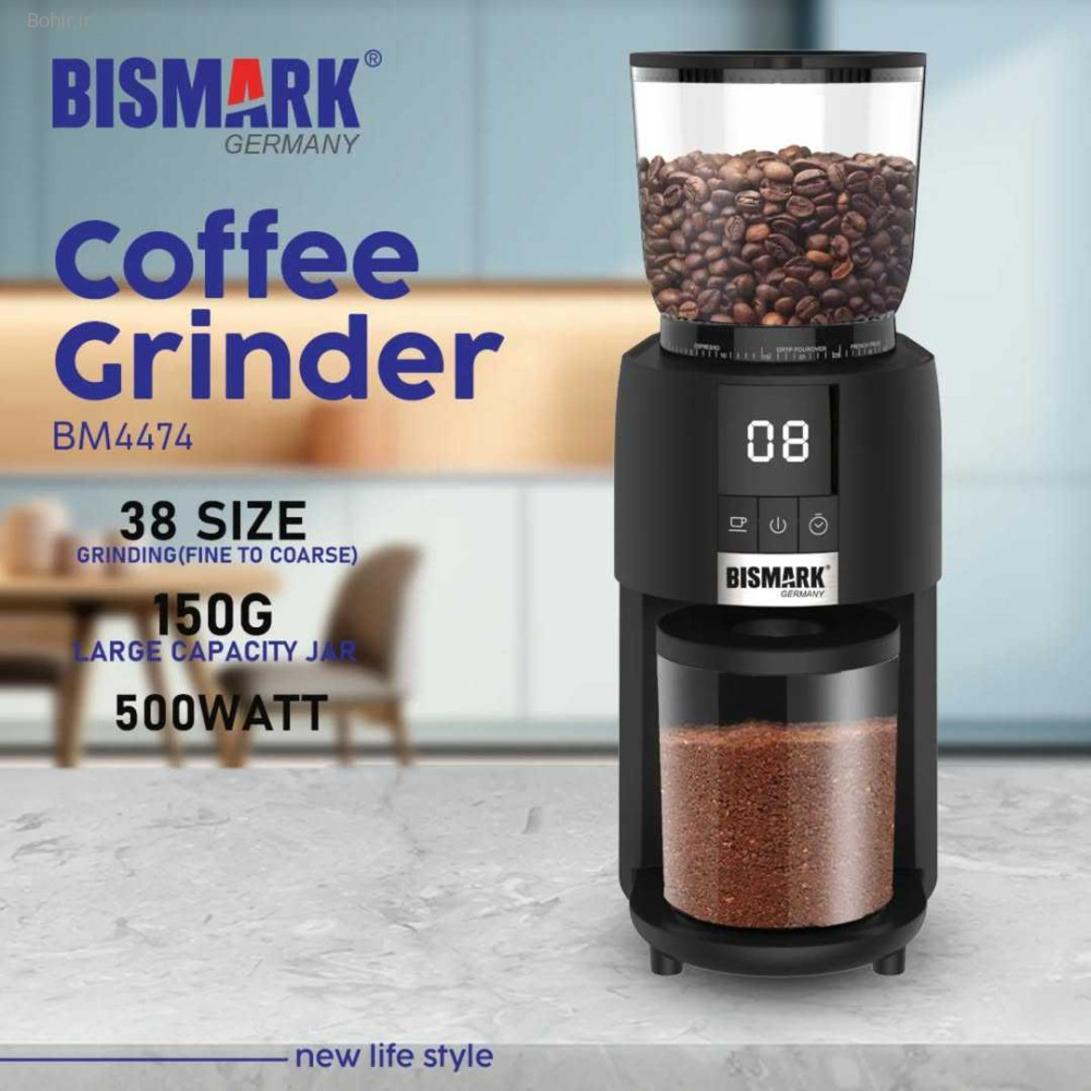 آسیاب قهوه بیسمارک مدل BM4474 با قدرت ۵۰۰ وات، تنظیم دقیق آسیاب و طراحی ارگونومیک یکی از گزینههای قابل اعتماد برای خانه یا محل کار است.
