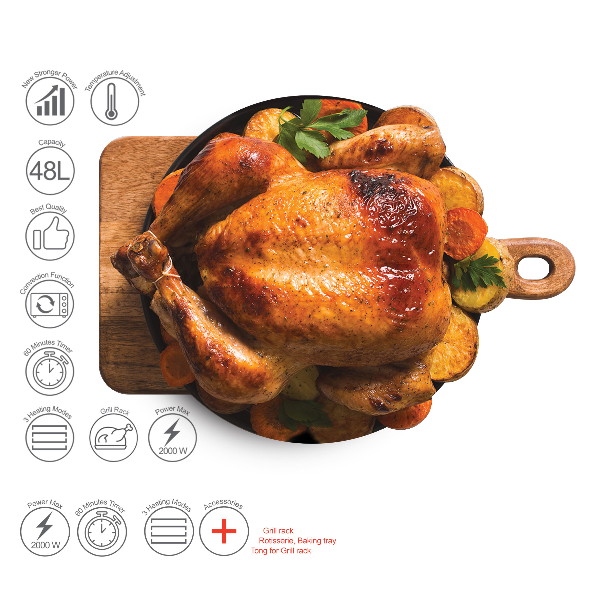 ظرفیت 48 لیتری این آون توستر برای خانوادههای متوسط و بزرگ مناسب است.