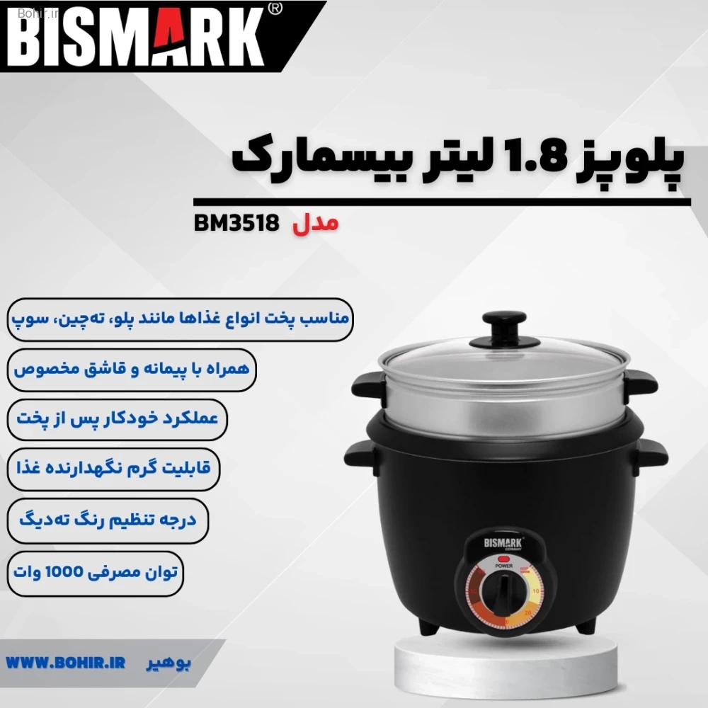 خرید پلوپز 1.8 لیتری بیسمارک مدل BM3518 برای تجربه بینقص پخت برنج ایرانی