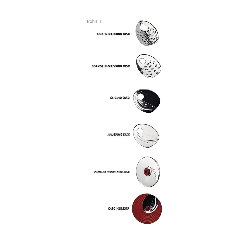 وجود ۵ نوع تیغه استیل ضد زنگ به شما اجازه میدهد مواد را به صورت حلقهای، خلالی، رنده ریز و درشت خرد کنید.