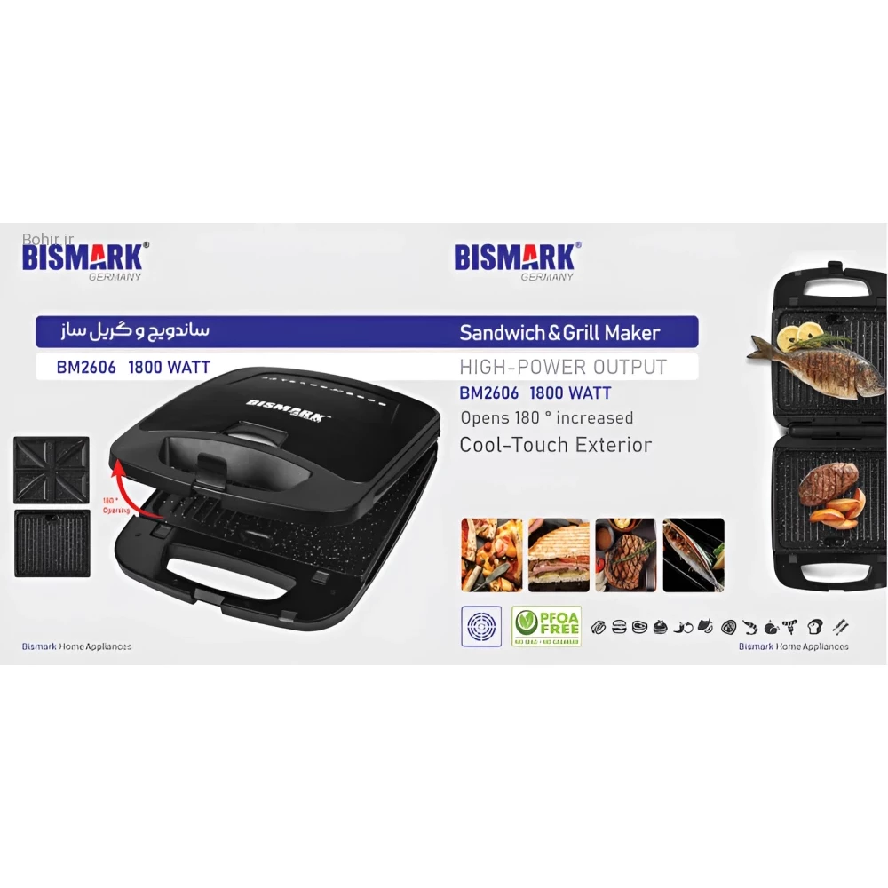 ساندویچ ساز بیسمارک BM2606 یک دستگاه 2کاره با توان 1800 وات، صفحه گرانیتی ضدخش و قابلیت باز شدن 180 درجه است که هم برای ساندویچ و هم گریل کاربرد دارد. سرعت پخت بالا، صفحات قابل جدا شدن و ایمنی مناسب، آن را به انتخابی ارزشمند برای مصرف روزانه تبدیل میکند.