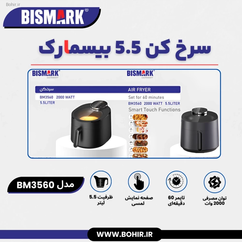 سرخ کن بیسمارک BM3560 ظرفیت 5.5 لیتر و 2000 وات – پخت سالم، سریع و بدون دردسر