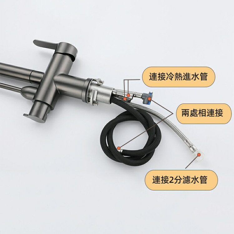 شلنگ کشویی با روکش سیلیکونی ضد گره و مقاومت بالا، خروجی را تا ۶۰ سانتیمتر جابهجا میکند تا به همه نقاط سینک دسترسی داشته باشید.