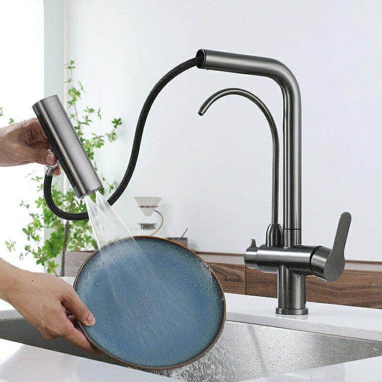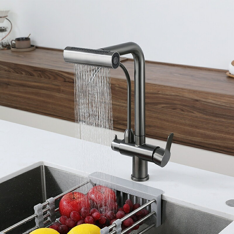 این شیر مدرن با ۴ حالت خروجی متفاوت، شلنگ شاوری متحرک و قابلیت استفاده از آب شهری و تصفیهشده، تجربهای تازه از شستشو را در آشپزخانه رقم میزند.