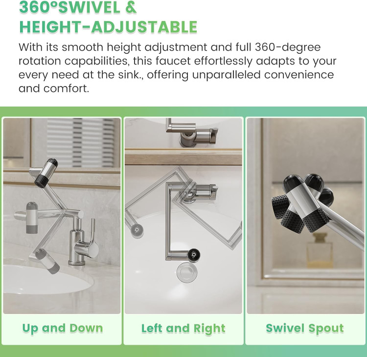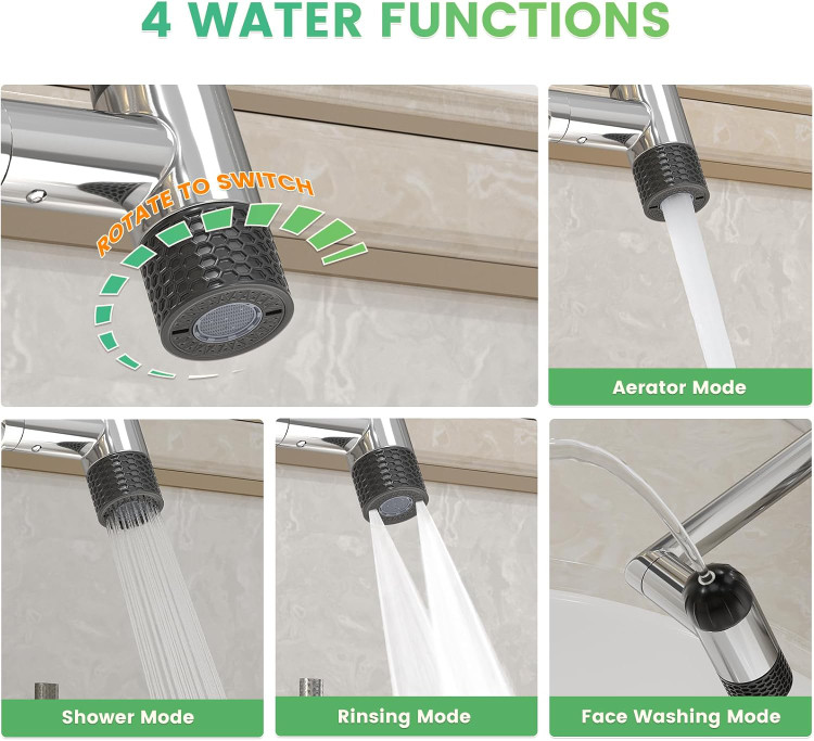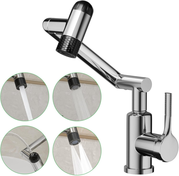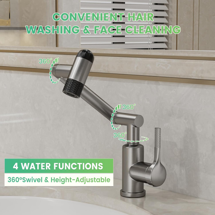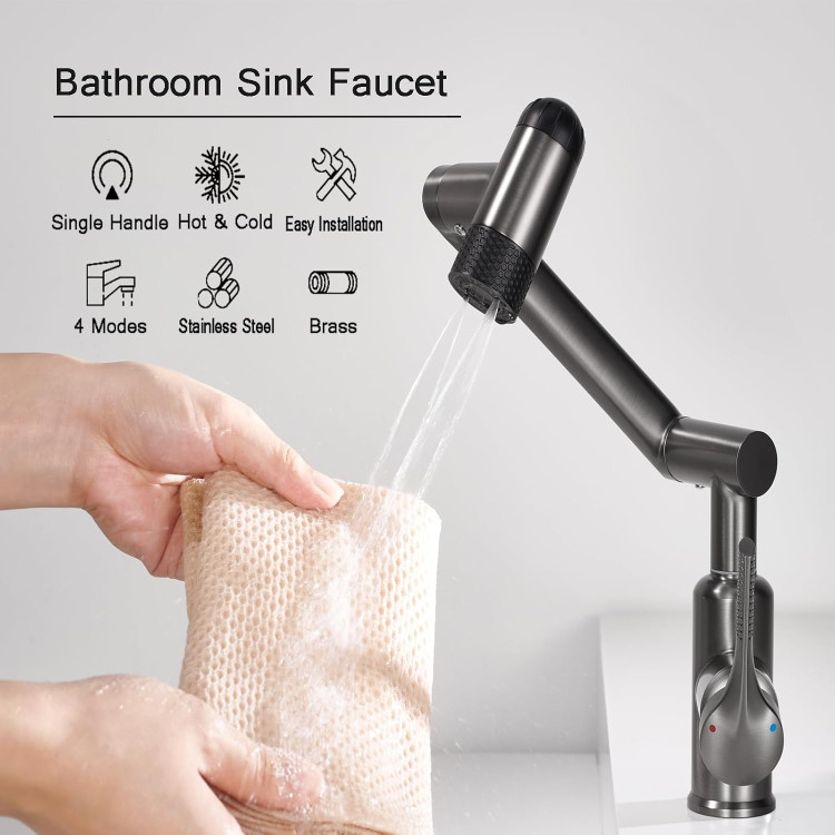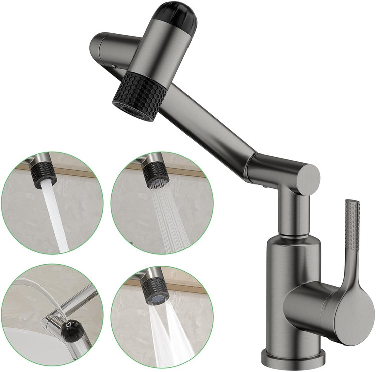 شیر روشویی 6 حالته هوادیائو | پاشش 360 درجه بازویی | طراحی مدرن و لوکس رنگ دودی