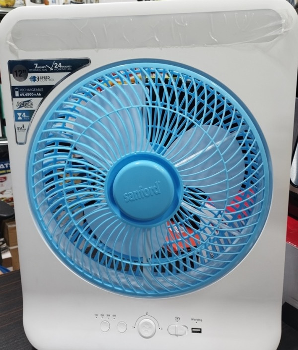 پنکه شارژی Sanford SF919BFN، فن جمعوجور و کاربردی با نور اضطراری LED و باتری ۶V ۴۵۰۰mAh؛ ایدهآل برای استفاده در خانه، محل کار، مسافرت و زمان قطعی برق.